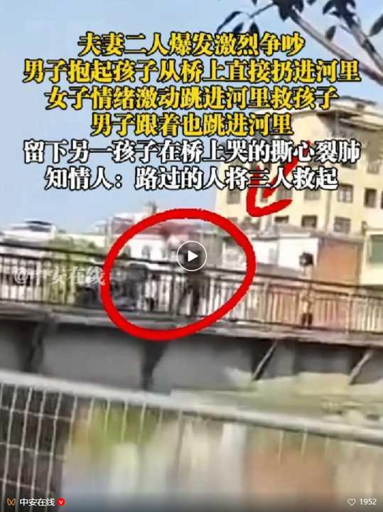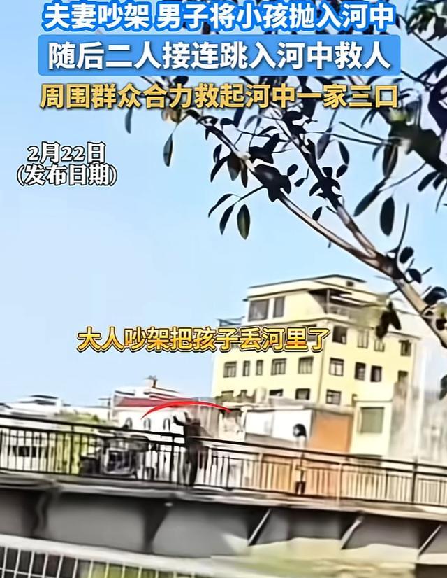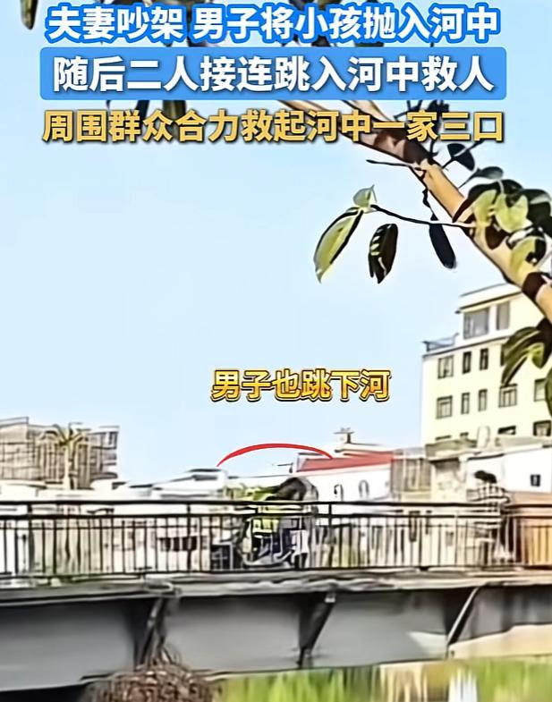 两夫妻在桥上吵架,父亲竟直接把孩子扔进河中,夫妻俩接连跳入河中才将孩子救出,而另一个孩子的哭喊看哭了全网。