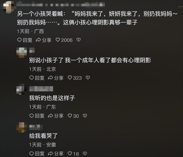 还有的网友担心两个孩子以后的心理健康,今天发生的事情可能会伴随孩子的一生。