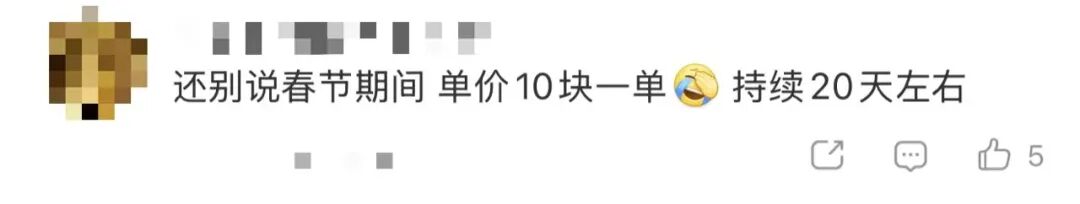 “我们过年期间留返岗补贴是每人5000元,特定时段全勤在岗并完成基础跑单任务,还将发放3200元的激励奖金。月收入要达到近2万元,除了拿满过年的补贴,每天的平均单量需要约70单。”李先生说。
